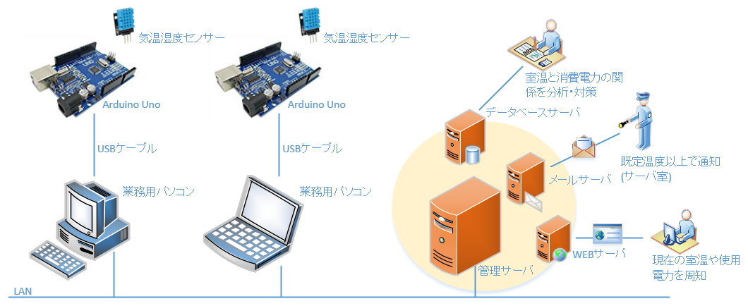 こんにちは、システム担当の矢部です。今回はサーバ室やラック内の温度を安価に計測し、ポータルサイトに表示することやメールで通知する機能を作るというテーマで調べてみました。以前、マイコンのArduino Unoでセンサーやリレー制御を遊び感覚で触れたことがあったので、Arduino Unoと温湿度センサー(DTH11)で実験を開始しました。
