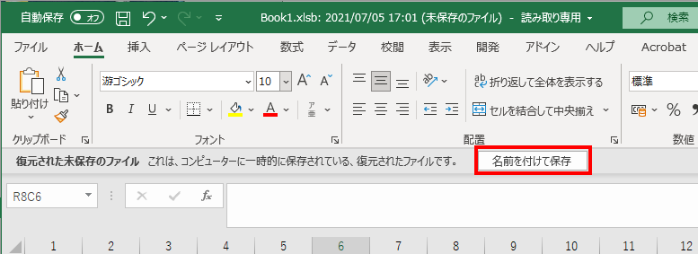 そんな中で、書類を作成中に間違えて保存せずにExcelを閉じてしまい作成中のデータが消えてしまった!